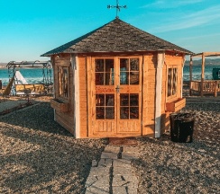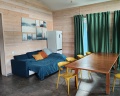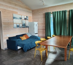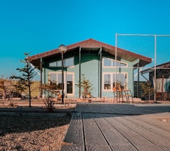 Комфортный дом со всем необходимым .Мы отдыхали дважды в доме на 6 человек в треугольном . Сейчас еще забронировали большой дом на 12 человек .Очень удобно что есть питьевая вода из фильтра и не нужно привозить с собой .