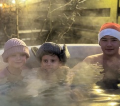 Купель очень кстати вечером 🥰Благоустроенная территория. Здорово , что есть на улице отдельный туалет с раковиной комфортный и чистый .