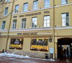 Отель имеет очень удобное расположение в центре на Невском проспекте рядом с Казанским собором и метро. Рядом большое количество кофейнь и ресторанов.