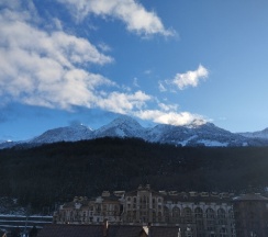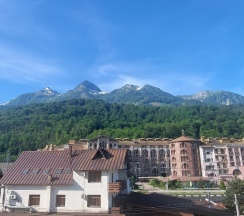 Гостиница очень удобно территориально расположена, рядом магазины, кафе, огромный ТЦ. Вечером можно погулять. Рядом подъёмники на гору. Так же можно съездить на море (на машине 40 минут), до остановки общественного транспорта 10 минут ходьбы. Нам все понравилось!