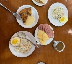 - Есть завтраки. Без изысков, но опять же не готовить, в целом мы все съедали