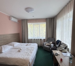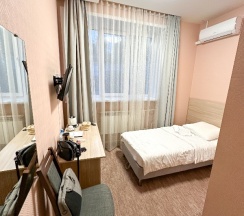 Замечательная гостиница! Проживала в одноместном номере после реновации. Номер пахнет новой мебелью и ремонтом. Новейший. Все чисто, уборка ежедневно. Бутылочка воды, пакетики чая, кофе, сахар, чайник и чайная пара. Холодильник. Кондиционер. Тапочки, мыльно- рыльное. Место идеальное. Центр, набережная 3 минуты ходьбы. При этом очень тихое место. Я в восторге. Завтраки включены, вкусные и на выбор. Если что могут с собой в контейнер положить. Рекомендую на все 💯 единственное, в моем номере не было шкафа, это единственный минус, Но для меня не критичный- стул использовала для вещей