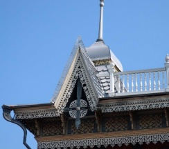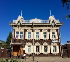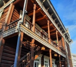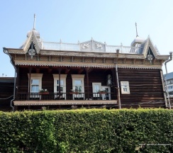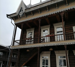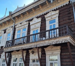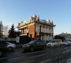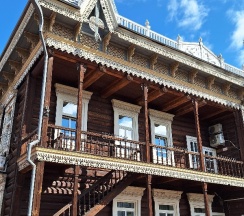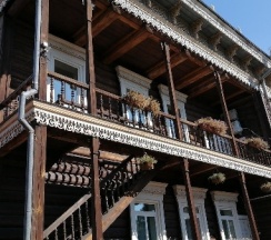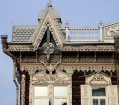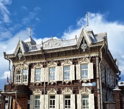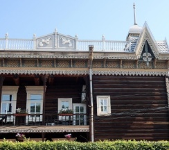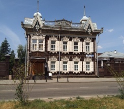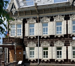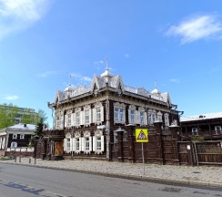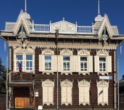 Красивый деревянный дом, радующий глаз!.Можно было бы часами бродить по городу, любуясь старинными особняками, но... В городе полно бездомных собак, которые собираются в стаи и бродят в поисках пищи. Особенно часто встречаю их в районе ул Декабрьских Событий и Темирязьева. Эти собаки могут и напасть. Мою взрослую дочь покусали. Как это вообще сочетается с туристическим городом! Куда смотрят власти!