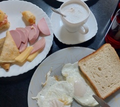 Отличный отель! Были второй раз. Завтраки обычные яичница каша, нарезка сыр и колбаса. Блинчики . Чай и кофе.