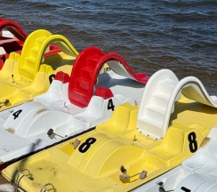 Понравился пляж, чисто, есть душ, катамараны и кафе.