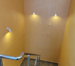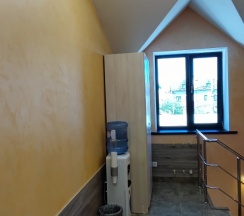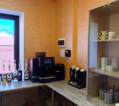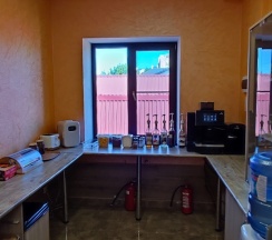 Отель из себя представляет большой дом с номерами, просторным коридором и небольшой кухонной зоной, где можно купить кофе, заварить чай или сделать тосты.