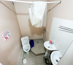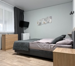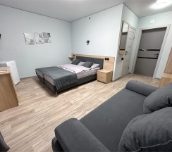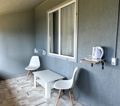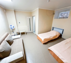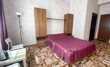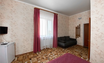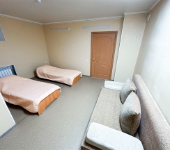 Четырехместный стандартный номер с двуспальной кроватью, диваном, телевизором, кондиционером, небольшим холодильником. Также в номере присутствует шкаф для одежды, санузел с душем и туалетными принадлежностями. Номера расположены на 1 и 2 этажах.
