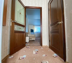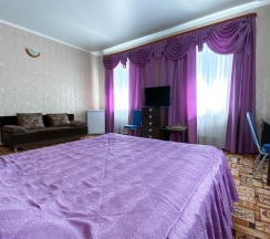 Просторный семейный номер, который подойдёт для проживания пяти человек. Из удобств: кондиционер, холодильник, чайник, санузел в номере. Спальные места: двуспальная кровать, односпальная кровать и двуспальный диван.
