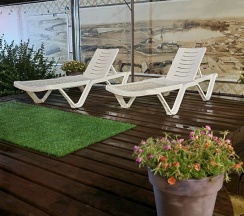 Уютный дворик( немного жарковато конечно днем , если ты не на озёрах, и бассейн еще бы😄)
