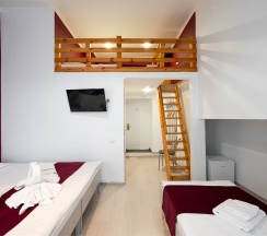 Отель находится на улице Баумана, рядом есть всё: кафе, рестораны, магазины, аптека, сувениры прям на первом этаже, в отель можно заселяться с питомцами, что очень удобно, потому что мы путешествовали с собакой. В номере уютно, есть второй этаж))) На этаже есть кулер с водой, гладильная доска с утюгом и микроволновка. Цены приемлемы, шумо изоляция хорошая, шум на улице не слышно.