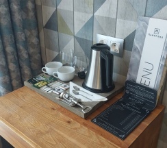 **Шум** стал небольшим минусом: наш номер выходил на улицу, и было слышно музыку из проезжающих автомобилей. Также стоит учитывать, что соседи могут устраивать вечеринки до 23:00.