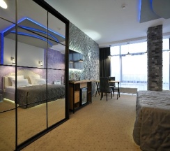**Оформление номеров** действительно впечатляет. Особенно понравился многоуровневый потолок с подсветкой, которую можно настраивать с помощью пульта — очень атмосферно! **Ванная комната** оснащена качественными средствами гигиены: мыло, гель для душа — всё на уровне. **Панорамные окна** создают ощущение простора и свободы.
