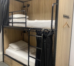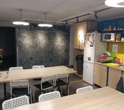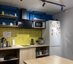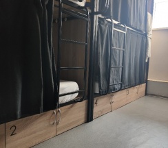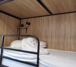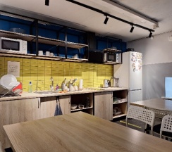 Приятный хостел, оперативное заселение. Постель была чистая, полотенце тоже. В спальном месте есть две две розетки и светильник. Порадовало наличие места для хранения багажа и коворкинг зона. Кухня чистая и обеспечена всем необходимым: бесплатно предоставляется сахар, чай, кофе, печенье, большое количество посуды, есть даже бумажные полотенца и салфетки!