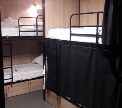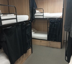 Номера чистые, аккуратные. Плотная шторка на обеих ярусах позволяет отоспаться без страха, что тебя ослепят. В 23:00 выключается основной свет в комнатах (это прописано в правилах на ресепшене). Если кому нужен свет, то может воспользоваться не менее ярким светильником в своем спальном месте. Интернет работает стабильно. В гостевой можно посмотреть фильм из каталога или поиграть на приставке. На кухне все в рабочем состоянии. Есть два холодильника, возможность подписать свои продукты, заварить себе чай, кофе, приготовить еду. Кто уезжает и у него остались продукты, может оставить их (подписав соответственно) для других постояльцев.