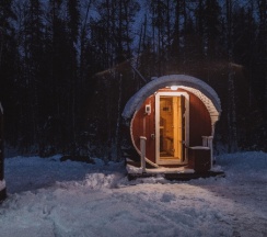 Домики с сауной очень классные( два человека поместятся)