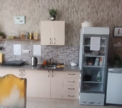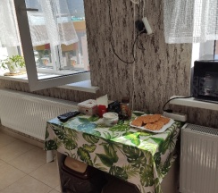 Отдельная кухня со всеми принадлежностями и с холодильником. Рядом есть много магазинчиков, такси без проблем приезжает. В шаговой доступности парк, кафе, рестораны, магазины. Местоположение очень удачное. Цена для такой гостиницы приемлемая.