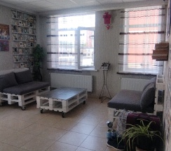 Хостел в новом доме. Все очень чисто, постоянно убирают,поддерживают. Уютная общая кухня и зона отдыха. Я там работала с ноутом, дверь закрывается. Постельное белье свежее, стираное, глаженое. В комнате тоже чисто. Наш санузел был рядом с комнатой. Очень удобно. Не надо выходить в общий коридор.