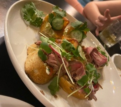 Отдыхали в ресторане ,заказала салат с баклажан принесли без сыра и много кинзы. Не понравился . Сама атмосфера не плохая. Были поздно ,красиво все, современно. Цены соответствуют ресторану. Номер в гостинице шикарный ,чисто ,уютно все новое . Всё средства гигиены есть,белые нежные халаты ,полотенца. Ставлю 5 звёзд. Надеюсь ещё раз приеду другие блюда мне понравиться