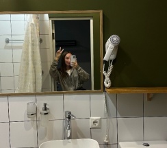 Хороший хостел , находится в спортивном клубе на втором этаже и выше. Слышимость средняя. Персонал приветливый, рядом с полицейским участком. Хорошая кухня и есть общие зоны. Так же есть утюг и тд…