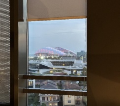 Отлично провели семейный мини-отпуск. Уютный номер, приятное обслуживание, отзывчивый персонал. Очень вкусные и разнообразные завтраки (шведский стол). Вид из окна - огонь (и море, и олимпийские объекты, и горы, и Сочи Парк… и всё из одного номера)