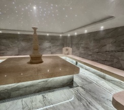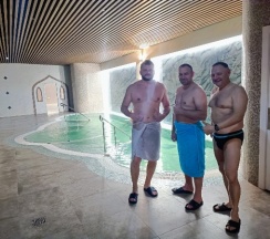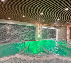 Просторно, разные парилки на любой вкус и настроение. После можно принять душ, поплавать в бассейне с гидромассажем. В баре прохладительные м горячие напитки - чай на выбор.