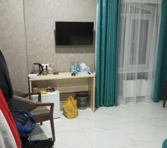 Останавливались в данной гостинице с 1 по 3 мая.При выборе гостинице всегда учитываю чистоту,состояние мебели и предоставляемые услуги.Номер у нас был трёхместный.Номер идеально чистый,постельное белье и полотенца чистые.К самому номеру претензий вообще не было.Единственное что не было пульта от телевизора,когда сообщили это сотруднику,получили ответ, что мастера сегодня уже нет,завтра с утра все сделаем. Но утром самим пришлось напомнить,т к про нас конечно же забыли.Вопрос решили.Касаемо кухни, сразу предупредили что повара нет,поэтому только закуски и салаты из меню.Салаты/закуски были вкусными.В день заселения посетили спа центр.Остались очень довольны,10 из 10. Касаемо завтрака.Вот здесь испортили начало дня.С вечера когда мы озвучили что нам необходим завтрак, с нас сразу взяли оплату по 900 руб за каждого. Если б знала что представляет из себя завтрак, оплату бы не производила заранее. Подошли к кафе, уточнила где напитки. Потому что на столе кроме термопота ничего не стояло. На что мне ответили, что кофемашина сломалась (хотя с вечера она стояла на столе). Окей, если кофемашина сломалась, можно было обеспечить обычным растворимым кофе, сливками и сахаром. Мне, как человеку, начинающий свой день с кофе, просто было дикостью это видеть и слышать. Думаю ладно, попью чай, хотя могла просто чай попить в номере бесплатно. Но на столе не было ни стаканов для чая, ни заварки. Снова говорю администратору. Пришлось два раза уточнить касаемо чая. Через 7 минут принесли одноразовые пакетики с чаем и стаканы на две персоны. Из еды я даже ничего уже не смотрела, муж положил мне немного непонятной каши, потому что я уже была расстроена. В итоге съела пару ложек каши и попила обычный чай без ничего. Потому что элементарно не было стандартного набора: масло и сыра хотя бы. Вообщем завтраком мы не довольны от слова совсем. Потеряли только время. Если б знали,сразу поехали в другое кафе,где мы очень вкусно позавтракали.Завтрак 1 из 10. Это не стандарты гостиничного комплекса.