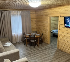 Все, что нужно для комфортного проживания , в одном месте - уютные домики, баня с прорубью , бассейн с подогревом , есть детская площадка с батутом и мангальная зона)
