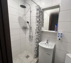 Останавливались в номере «комфорт» на одну ночь. Переночевать можно, но, на мой взгляд, цена завышена. Номер находится рядом с кухней, от звуков с которой мы проснулись в 6 утра. Там готовил мужчина, который гремел, кашлял и харкался (куда - не знаю, предполагаю, что в раковину). Ковер в номере с пятнами, матрас неудобный - слишком мягкий. В остальном нормально - белье чистое, есть свой душ, кухня большая, бесплатная парковка напротив - возле Магнита. Если бы не администратор, которая сообщила нам о том, что мы забыли детскую машинку, то поставила бы 3 звезды. Спасибо ей за то, что сообщила. Постараемся вернуться за игрушкой.