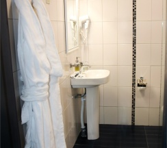 Номер отличный, всё понравилось кроме ванной комнаты.Там нужно было сделать стеклянную панель чуть шире.Когда принимаешь душ вода стекает на пол.
