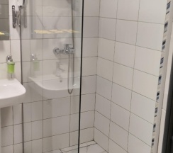 Номер отличный, всё понравилось кроме ванной комнаты.Там нужно было сделать стеклянную панель чуть шире.Когда принимаешь душ вода стекает на пол.
