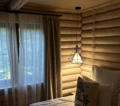 Курорт расположен в очень живописном месте, вдали от городской суеты. Здесь царит атмосфера спокойствия и умиротворения. Мы жили в уютном домике со всеми удобствами, где очень комфортно разместились наша семья из 6 человек. Мы останавливались в коттедже "Калина".
