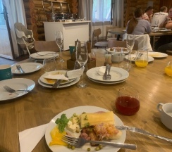 Прекрасное место для отдыха большой компанией. Мы отмечали здесь свадьбу всей семьей, дом был оснащен всем необходимым, к нашему приезду уже был даже сервирован стол, а на ресепшн можно угоститься шампанским пока оформляешь документы. Был неприятный момент с доставкой пиццы - курьер перепутал домики и отдал наш заказ другим людям (надеюсь, чужая пицца не встала им поперек горла)), но персонал сразу же разрешил вопрос, за что отдельное спасибо хочется сказать Александру и Ксении! Еда была отличная, что в ресторане (ужинали и ходили 2 раза на завтрак), так и вышеупомянутая пицца. На территории живут животные, видно, что за ними хорошо ухаживают. Есть так же козочки, из молока которых скорее всего делали творог (но это наше предположение)) С радостью вернемся сюда летом, чтобы в полной мере отдохнуть телом и душой