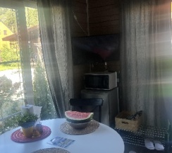 Отличные домики очень чисто экологично,соответствует фото, однозначно рекомендую всем! Тепло чисто уютно,постели отличные,кухня прекрасная.