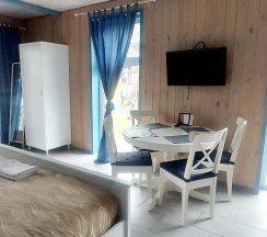В номере настолько всё продумано! Кухонная зона замечательная,есть абсолютно всё! Столовые приборы,соль,сахар,салфетки,губка,сковородки,стаканы,тарелки,абсолютно всё!