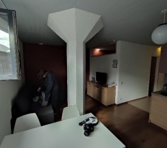 Останавливались в апартаментах на одну ночь. Замечательное расположение. Персонал вежливый, до заезда несколько раз писали и звонили с уточняющей информацией. Номер на 4 этаже, чисто, окно не форматное, но нам повезло и оно было достаточно большое (находилось ближе к потолку). Вся необходимая кухонная техника, даже посудомойка, в ванной стиральная машина. Немного уставшая ванная комната, но в целом номер с хорошим ремонтом и чистый. Свежее белье и полотенца.