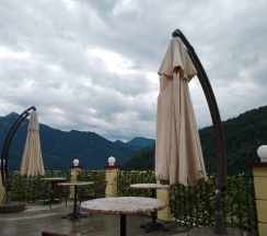 ну а шикарный вид из окна будет ещё долго сниться! слегка тёплый бассейн также с видом на горы, крытый. Сытные и разнообразные завтраки. есть ещё терраса с мангальной зоной.