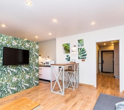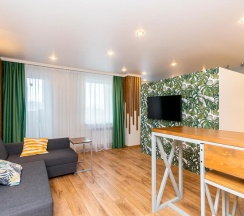 Понравилось: Апартаменты новые, стильные. Тепло и уютно. Есть все необходимое для проживания. Приятный бонус после дороги- чай, кофе, мини-шоколадки.