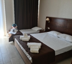 Приезжали на дней 7, мужской компанией, отдохнули круто, все понравилось, кулеры около номера, персонал отзывчивый, администратор решил все вопросы что были, расположение огонь, прям у моря, есть куда сходить, все устроило!