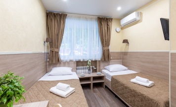 Номер с двумя односпальными кроватями. В номере: отдельный санузел с душевой кабиной, кондиционер, вместительный шкаф для одежды, стол для работы, большой LCD-телевизор с USB-входом, мини-сейф.