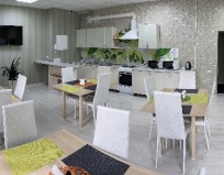 Вежливый персонал, чистый номер. Отдельно хочется отметить кухонное помещение с холодильником, плитой, кулером с водой, столовыми приборами. Есть завтрак и ужин (за дополнительную плату).