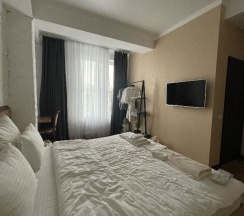 Очень красивая гостиница. В современном стиле. В номере все есть - полотенца, тапочки, шампунь и гель для душа, одноразовые наборы. Красивая локация на крыше, где можно посидеть и полюбоваться видом на горы. Включен завтрак (сытный и вкусный). Внимательный персонал. Цена отличная! Рекомендую.