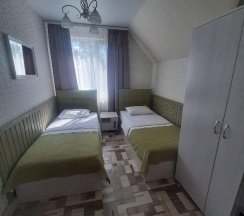 Комфортное, уютное место. В номере чисто, есть комплекты полотенец и одноразовые тапочки на каждого, телевизор, кондиционер. Кухня, туалет и душ общие на три номера. В кухне есть всё необходимое (посуда, микроволновка, небольшой холодильник (мы там забыли сыр, колбаску нарезку, закуску и выпечку, просим прощения). В душе есть мыло, гель для душа, шампунь, фен). Очень удобно, что можно за отдельную плату заказать завтрак(яичницу, сырники, кашу). Спасибо!!!