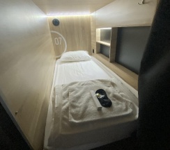 Для короткого путешествия в одного - абсолютно прекрасно. Персонал вежливый и отвечает на все вопросы, капсулы чистые и функциональные, тихо, женская ванная приятная, шкафчики для вещей достаточно вместительные.