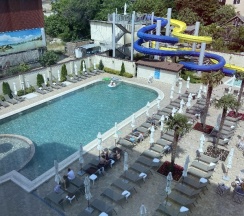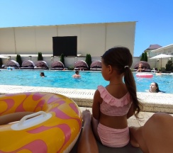 оценка 4+ или 5-, отдых - начало июня. плюсы: очень чисто, номера огромные, халаты, тапки, всякие косметические принадлежности, каждый день пополняют 1бут 0.5 воды на человека, чай, уборка ежедневно. бассейн не маленький, горки, холл красивый, вкусно пахнет, постель идеальная белая, завтраки вкусные, очередей нет, официанты как пчёлки быстро все убирают, полотенце для бассейна без всяких карт всегда в доступе, есть экран у бассейна, музыка,персонал весь очень вежливый, трансфер на море ходит чётко, водитель очень хороший, почти гид) . минусы или особенности отеля : заявлена анимация с 1 Июня, но пришла 3го( но анимация тут рассчитана на очень маленьких детей, от 6л уже будет скучно, для взрослых ее вообще нет (ни акваэробики, ни просмотра кино по вечерам, хотя есть шикарный экран ), горки включили 1 Июня, но с опозданием, сначала что-то ремонтировали( могли 31го начать ремонт) , работают с 11 до 13,с 16 до 18, но если нет людей, то могут выключить раньше времени.в бассейне много мусора ( какой-то технический, чёрные хлопья, но кто не ныряет-бассейн выглядит идеально 😁) Шезлонги на море бесплатно только на террасе по лестнице , но там только тень, если передвинуть шезлонг на 3 метра на солнце, то администратор пляжа (к отелю не имеет отношение) ходит бесится, грубит гостям, кажется его зовут Василий. вид на дорогу - немного шумно, в 2х комнатном номере на 4-5 чел на балконе только 2 стула. оснащение номера бестолковое:в комнатах нет ни одного шкафа, только в коридоре. в целом отель достойный, минусы есть везде. тут не критично. в отель может вернулись бы ещё, Лазаревское не очень впечатлило.