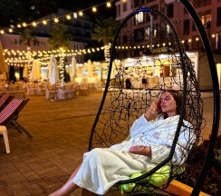 Отдельное спасибо бармену Сергею, его коктейли просто пушка !) Каждый из них по своему прекрасен! Обязательно попробуйте!) Так же спасибо горничным 6-го этажа, качественная уборка! Весь персонал отзывчивый, поможет с решением любого вопроса ! Приятно были удивлены,что во время дождя выдавали зонтики !) Спа комплекс радовал вечерами, хамам,баня!
