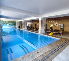 Отличный спа отель, бассейн и вдоль него есть всё, бани разные, сауны, солевая комната, хамам, бесплатный чай, гидромассаж и столики