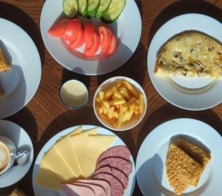 Вкусные завтраки, теплый бассейн, просторные номера.