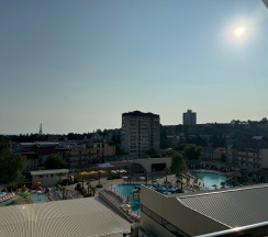 Отель чистый, уютный, номера достаточно просторные и так же чистые, горничные внимательные, есть бассейн не плохой и горки для детей, детский уголок уже «уставший» не мешало б его хотя б отмыть . Снимаю звезду за ресторан так называемый, я бы назвала это столовой) взяли все включено и очень пожелали еды мало вся однотипная и не вкусная,ребёнка 3 года накормить было нечем, решили поесть по меню и ужаснулись есть не возможно , работа официантов и барменши удивила, персонал уставший, невежливый , не может связать два слова, меню не знает , выглядят неопрятными , лохматые . Меню принесли и положили на грязный липкий стол, и даже не протерли его и после, сбежали кушать к вашим соседям в аквакомплекс, сводите персонал кухни и офиков на обучения туда. Позорят ваш отель у которого 4 звезды.