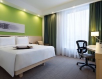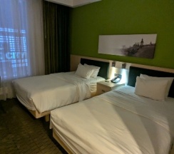 В номере всё новое и чистое. За 5 ночей 2 раза меняли постельное, полотенца каждый день. В номере чайник + чай, кофе, сахар, сливки, вода 2 бутылки 0,5 - пополняли каждый день. Маленький холодильник внутри устроен так, что можно поместить Бульбашку, винишко, воду, закуски, и даже имеется морозильный отсек. Первый раз вижу крошечный холодильник с таким