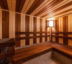 Не понравилось: Дверь в ванну как то плохо закрывается и скрипит. Сауна за 4 часа нагрелась только до 80 градусов на максимальном режиме. При том условии, что на камни воду лить нельзя - это мало. Печь для такого объёма парной явно маловата. В номере есть посуда, раковина и мини кухня, но нет губки для мытья и моющего средства. В помещении с ванной не хватает впитывающего коврика либо швабры автомата для быстрой протирки пола, вода тянется в основную комнату. Штору у окна над кухонной зоной следует укоротить, иначе она выполняет ещё и другие не свойственные ей функции.